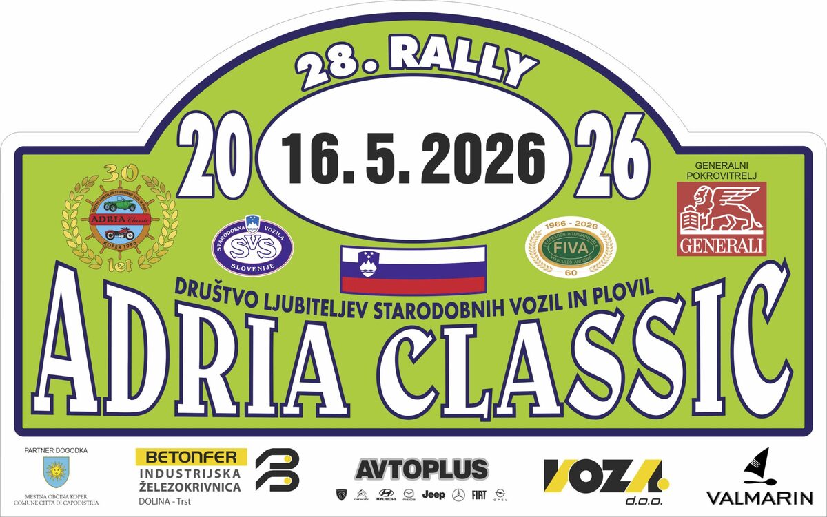 V soboto, 16. maja, bo od 10. ure dalje srečanje starodobnih vozil, 28. ADRIA Classic 2026. Predvidoma se ga bo udeležilo več kot 100 posadk s starodobniki, izdelanimi od leta 1900. Prišli bodo iz Slovenije, Italije, Hrvaške, Avstrije in Nemčije.