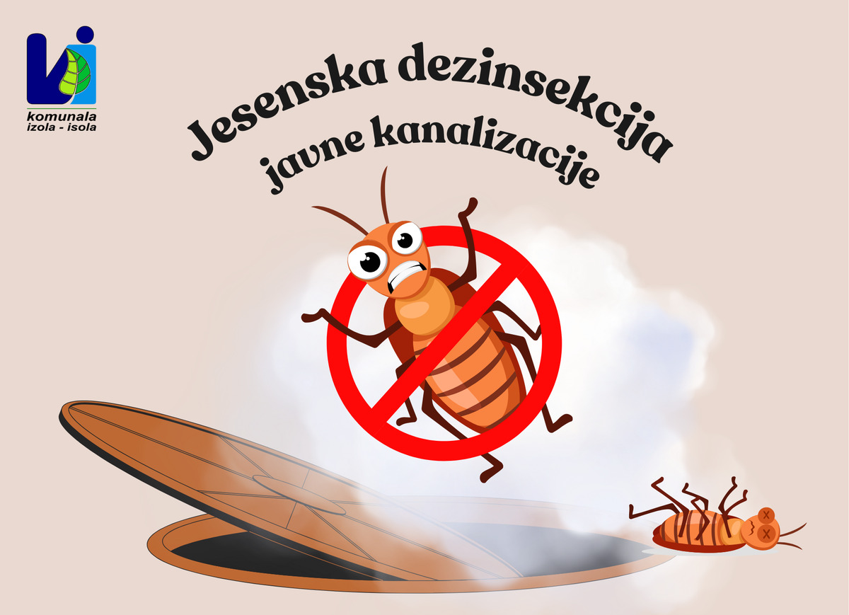 Komunala Izola obvešča, da bo v obdobju od 4. 9. 2025 do vključno 9. 9. 2025 izvedla drugo redno dezinsekcijo javne kanalizacije na območju občine Izola v sodelovanju s pooblaščenim zunanjim izvajalcem.
