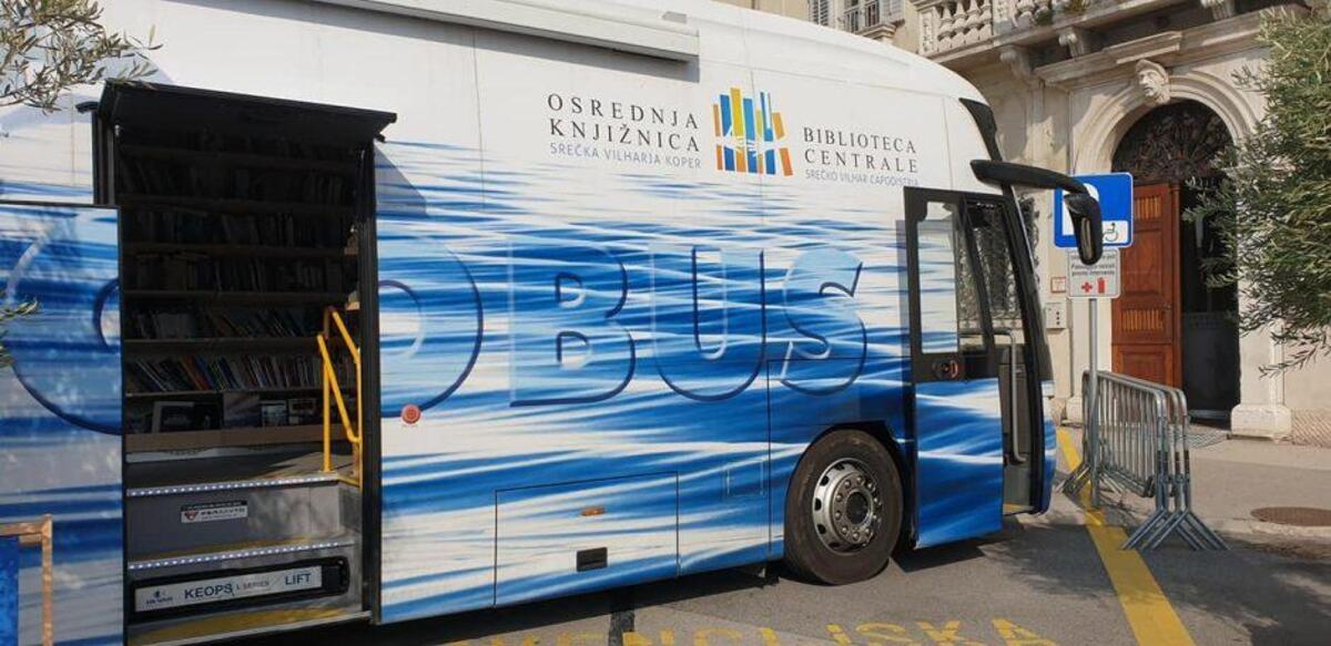 Knjižnica na kolesih Osrednje knjižnice Srečka Vilharja Koper stoji na nadgrajenem avtobusnem podvozju in naložena s knjižnim gradivom lahko tehta do 13 ton. Dostopna je tudi gibalno oviranim osebam. V njej sta zaposlena dva bibliotekarja, ki na terenu preživita od šest do sedem ur dnevno.