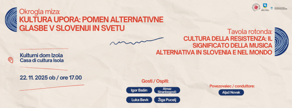 Okrogla miza bo potekala v soboto, 22. 11. 2025 ob 17. uri v Kulturnem domu Izola.