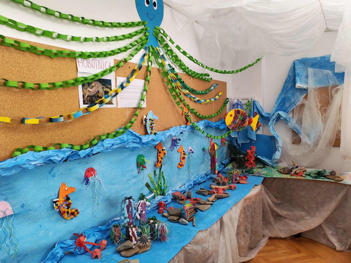 Posebno noto letošnjemu varstvu je dodalo sodelovanje v okoljski kampanji Morske živali niso igrače!, ki ozavešča pomen spoštljivega odnosa do morja in njegovih prebivalcev. Z otroki smo raziskovali morske živali, se učili o njihovih značilnostih ter razmišljali o tem, kako lahko z odgovornim ravnanjem prispevamo k njihovemu ohranjanju. Svoja spoznanja in navdušenje nad morskim svetom so otroci izrazili na ustvarjalnih delavnicah, kjer je nastal "morski kotiček" – večplastni prikaz življenja pod morsko gladino, ki krasi naše prostore in nas opominja na ranljivost naravnega sveta. Morje pogosto dojemamo kot prostor za oddih in zabavo, vendar gre za izjemno kompleksen in občutljiv ekosistem, ki je dom številnim živim bitjem. Vsak, tudi nenačrten poseg vanj, lahko poruši ravnotežje, zato nas kampanja opozarja na pomen spoštovanja, opazovanja in odgovornega sobivanja z naravo. Otroci so po naravi radovedni raziskovalci – med njimi so bodoči znanstveniki, zdravniki, okoljevarstveniki. Dolžnost odraslih je, da jih učimo odgovornega odnosa do okolja in narave, kar nam je uspevalo tudi v tem sproščenem poletnem času.