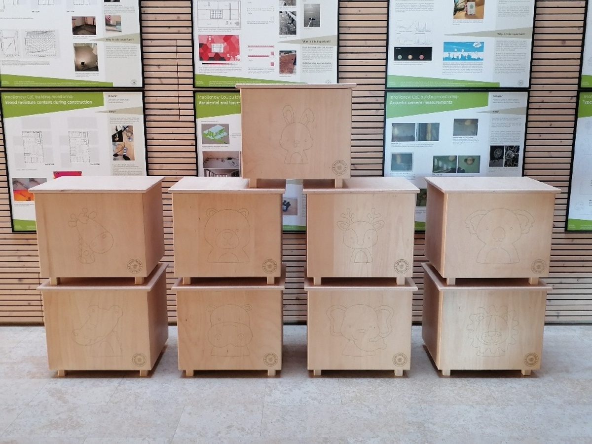 Tako kot lani smo ga predali samostojnemu raziskovalnemu oddelku InnoRenew CoE, ki deluje v okviru UP Inštituta Andrej Marušič, s sedežem v Livadah, kjer se posvečajo raziskovanju obnovljivih materialov ter razvoju trajnostne gradnje. Iz lesa prazničnega drevesa in dodatnega materiala, ki ga je prispeval inštitut, so nastale lesene škatle za shranjevanje igrač, ki smo jih razdelili v vse enote izolskih vrtcev in osnovnih šol.