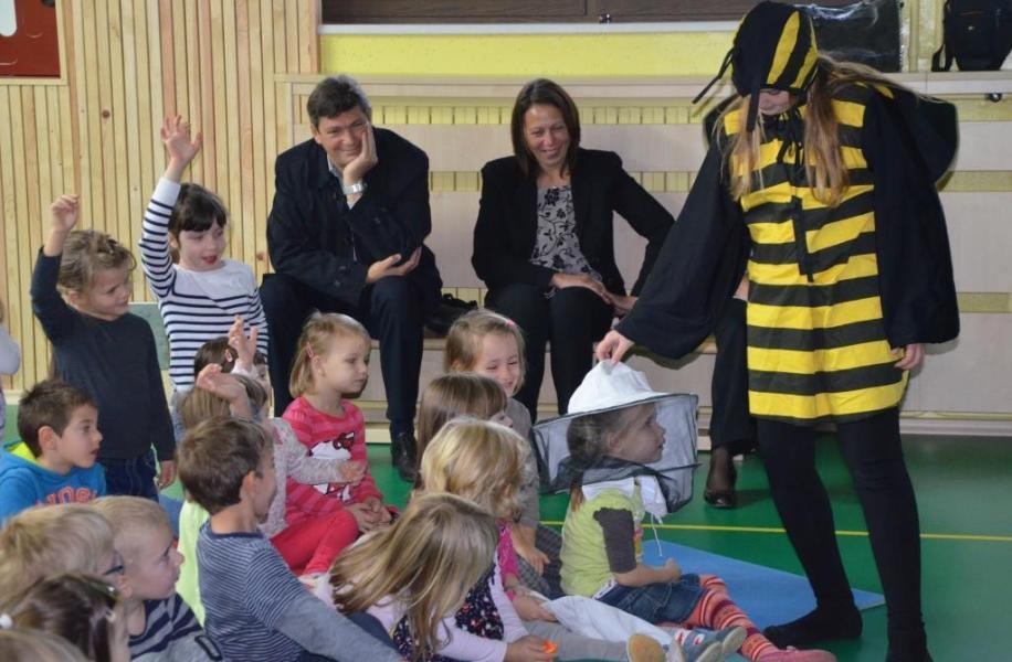 Otroci vrtca Mavrica so tradicionalni slovenski zajtrk označili kot prav poseben dan. Polni energije po tem, ko so že pojedli med, maslo in jabolko, vse domačega izvora, so še zaplesali. »Prazna vreča ne stoji pokonci,« je pomen zajtrka nazorno predstavil župan Kolenc in povedal, da tudi sam redno zajtrkuje. V nadaljevanju so si otroci pomerili čebelarsko kapo, rokavico in z radovednostjo opazovali satje, ki ga je prinesel čebelar. Izvedeli so, kakšne vloge imajo člani čebelje družine in zakaj čebele pikajo. Nekateri otroci so to bolečo izkušnjo že doživeli na lastni koži. Sicer pa so se otroci izkazali v znanju s področja čebelarstva, vedeli so tudi, da čebele pikajo, ker se bojijo, da bodo ostale brez medu in s tem brez hrane, ki je pomembna za preživetje, še posebej v zimskih mesecih.