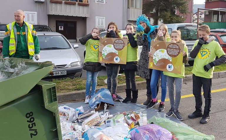 Pred postavitvijo ozaveščevalnih tabel na ekoloških otokih na Partizanski ulici so učenci, s pomočjo delavcev Komunale in vzornika ločevanja in ponovne uporabe Cupermana, opravili pregled vsebine zabojnikov. V zabojnikih za mešane odpadke so opazili izdatne količine embalaže, nekaj papirja, stekla in manjše količine bioloških odpadkov. V zabojnikih za ločeno zbrane odpadke niso zabeležili nepravilnosti, razen v zabojniku za biološke odpadke, kjer je bilo žal veliko odpadkov odvrženih v običajnih plastičnih vrečkah, čeprav podjetje ponuja brezplačen prevzem razgradljivih vrečk. Ob teh ugotovitvah se je soglasno sporočilo otrok glasilo: “Ločujte, saj drugače vaši otroci ne bodo srečni!”