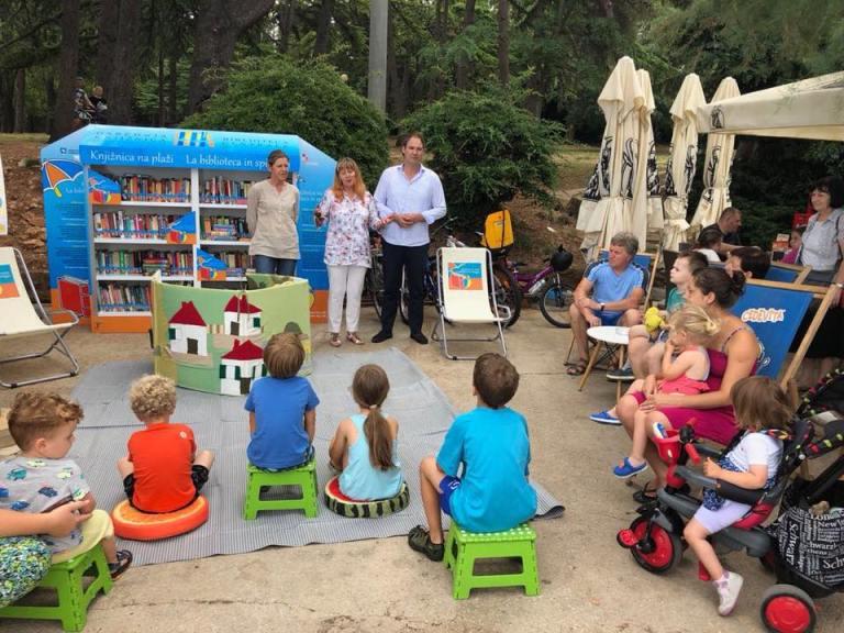 – 3.7.2018 ob 10.00: lutkovna animacija Muca Copatarica v izvedbi LKD Mari o net.te/Aljoše Križ in začetek delovanja knjižnice na plaži na Svetilniku