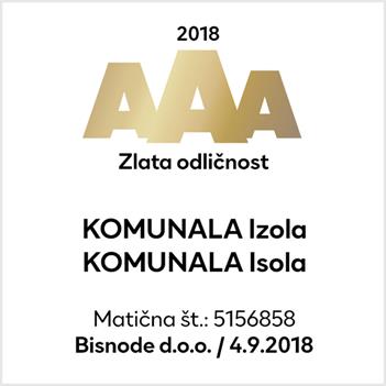 Takšen način razmišljanja in dela nas je v letošnjem letu, natančneje avgusta, privedel do certifikata zlate bonitetne odličnosti, ki potrjuje, da so naša prizadevanja za stabilnost poslovanja podjetja dokazano uspešna in ustvarjajo močan temelj za uspešno poslovanje tudi v prihodnje. Naslednja izredno pomembna potrditev pa je sledila novembra, ko smo kot prvo komunalno podjetje v primorski regiji uspešno prestali certifikacijsko presojo za pridobitev okoljskega certifikata kakovosti ISO 14001:2015 in kontrolno presojo certifikata kakovosti ISO 9001:2015, ki smo ga prejeli že leta 2016.