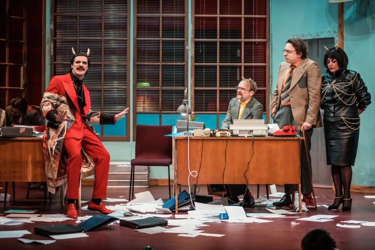 Globoko pod površjem zemlje se skriva birokratski aparat, ki premleva, razmišlja in zapleta na peklenski ravni. Kriki grešnih duš in groza večne pogube so bili vedno izvrsten vir komedije, toda zadnje čase peklenščkom ni do smeha. Sistem, ki je še včeraj tekel gladko kot driska, se zatika. Vse bolj je jasno, da je nekaj narobe. Hudo narobe. In nekdo bo moral prevzeti odgovornost. Višji sekrétar Feri in nižji referent Bubi sta vraga, zaposlena za polni delovni čas, kar pa ne pomeni, da tudi v resnici toliko delata. Kljub na pol budnemu nadzoru njune šefice, gospe Tojfl, se začnejo napake v oddelku 99/9 kopičiti. V urad prihajajo stranke, ki so žive – in kar je še huje – nekatere izmed njih popolnoma nedolžne. Nič ne pomaga. Ne zavzeta nesposobnost nižjih uradnikov, ne bes stanovskih kolegov iz nebes. Zadeve se zapletejo do te mere, da nastala situacija zbudi zanimanje regionalnega direktorja pekla, Tomislaba Kraša, znanega po svoji okrutnosti in slabem okusu za glasbo. Na grozo vseh zaposlenih se veliki šef odloči, da bo obiskal pekel in preveril, kaj za vraga se dogaja. Dobrodošli v kleti, kjer so dokumenti in duše vedno izgubljeni, uradniki profesionalno neprijazni in vrste večne. In kjer peklenska uprava dela nadure samo za vas. Avtorja komedije, diplomiranega filozofa in literarnega komparativista Jureta Karasa, ki kot scenarist, režiser, avtor glasbe ter oblikovalec zvočnih in vizualnih vsebin že več kot petnajst let ustvarja za gledališče, radio in televizijo, smo v našem gledališču že spoznali; ne le kot avtorja songov v glasbeni komediji Ventilator, tudi kot avtorja zmagovalne komedije Dnevov komedije 2019 Realisti.