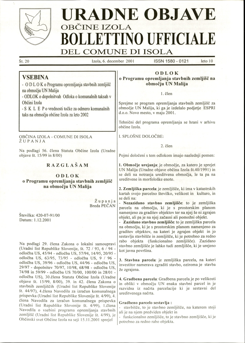 Uradne objave Občine Izola, št. 20/2001