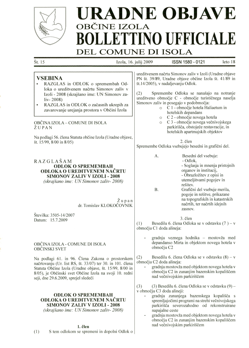 Odlok o spremembah Odloka o ureditvenem načrtu Simonov zaliv v Izoli - 2008 (Uradne objave Občine Izola, št. 15/2009)