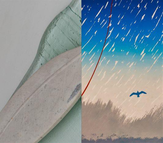 Asociativno nas delo vodi v naše okolje, spominja na jate galebov, ki včasih zapolnijo naše nebo, spominja na veter, ki mu galebi z lahkoto kljubujejo, s steklenimi podstavki spominja na morje nad katerim letijo. Vsekakor pa ta izjemno natančno in dodelano izklesana »lebdeča« kamnita peresa dajejo občutek sproščenosti, letenja, svobode… Kakor, da so se ravnokar izvila iz kamnite mase, »zaplavajo« v prostor in poletijo.