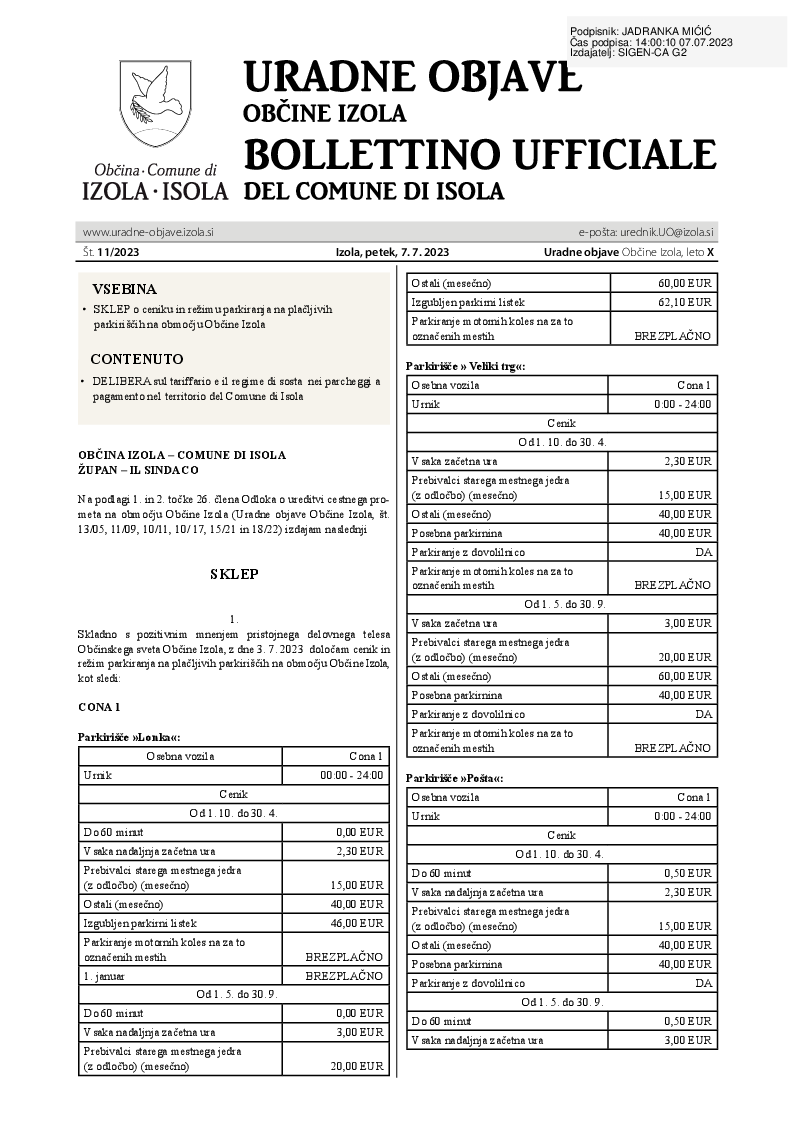 Uradne objave Občine Izola št. 11/2023