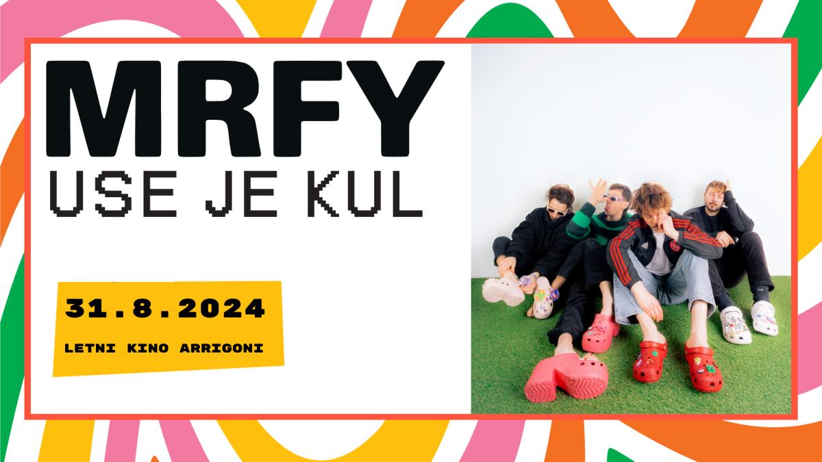 Na zadnji avgustovski dan, v soboto, 31. avgusta, ob 21. uri bo v letnem kinu koncert novomeške skupine MRFY Use je kul. Svoj prvenec Story s hiti Umru zate, Anakin, Tretje oko in Klic so fantje širšemu občinstvu predstavili leta 2018 v Kinu Šiška. Dve leti kasneje so med karantenskimi počitnicami v sodelovanju z Matter predstavili singel Zonzei, leta 2021 napovedali novo ploščo s skladbo Zaljubila ter kasneje izdali še z Zlato piščaljo nagrajeno skladbo leta Prjatučki. Spomladi 2022 so izdali nov singel Angeli in nato še težko pričakovano drugo ploščo z naslovom Use, ki so jo predstavili v dvakrat razprodanem Kinu Šiška. Sledili so še drugi razprodani koncerti, vrhovi radijskih lestvic in številne nagrade - 3 Zlate piščali za dosežke v lanskem letu: za izvajalca leta, album leta (Use) in skladbo leta (Angeli). Prvih 100 vstopnic bo v predprodaji mogoče kupiti za 12 evrov, zatem za 15 evrov, na dan dogodka pa za 18 evrov oziroma v VIP loži za 35 evrov (za 3 osebe, mizo in pijačo dobrodošlice). Predprodajo omogočata galerija Alga in agencija Eventim.