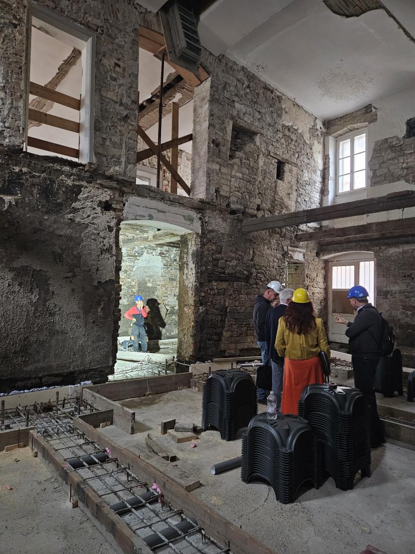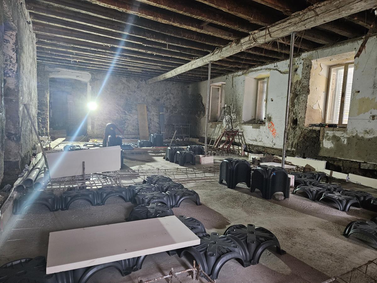 Delavci so že naredili betonske temelje in v teh dneh urejajo talno ploščo. Predvideli so vmesni sloj prezračevanja, da se bo v palači nabiralo kar najmanj vlage. Sledila bo utrditev kamnitih zidov v pritličju, delna sanacija starih tramov in postavitev jeklene konstrukcije, ki bo podpirala lesen strop.