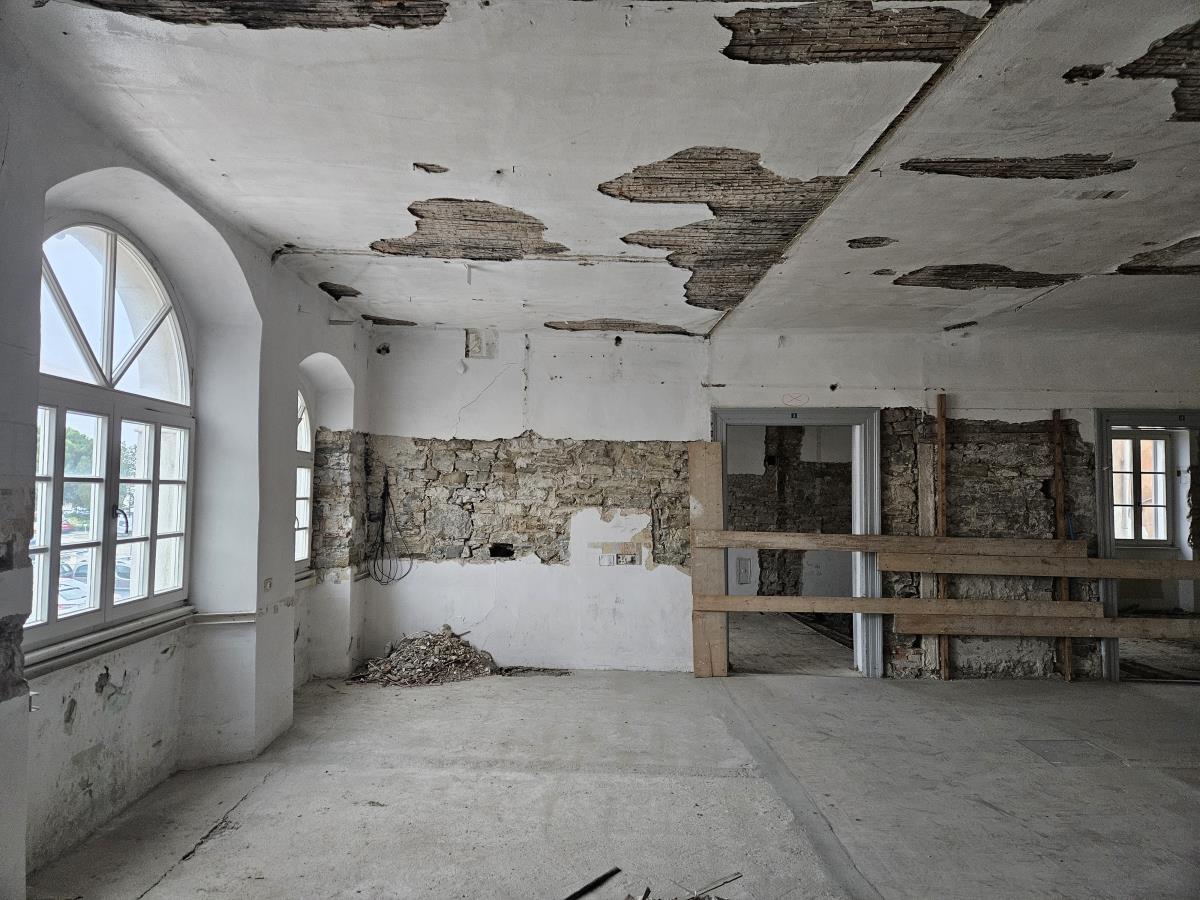 Letos spomladi je občina začela z obnovo Podestatove palače, v prvi fazi s statično sanacijo, da bo objekt varen za javno uporabo. Dela so se najprej začela v pritličju. "Odstranili smo predelne stene in delno tudi strop, zatem so se izvedla arheološka izkopavanja, sledilo je globoko temeljenje z mikro piloti. Palača prav zdaj dobiva ustreznejše globoke temelje," pravi vodja nadzora Benjamin Žnidaršič. Da so takšni temelji potrebni zaradi nove jeklene konstrukcije, s katero bodo ojačali zidove in medetažno konstrukcijo med pritličjem in nadstropjem, pojasnjuje vodja projekta Andreja Gerkšič iz projektantskega podjetja OBLIKA2. "Nadstropje objekta bo tako preneslo dodatne obremenitve, ki jih bodo prinesle javne prireditve."
