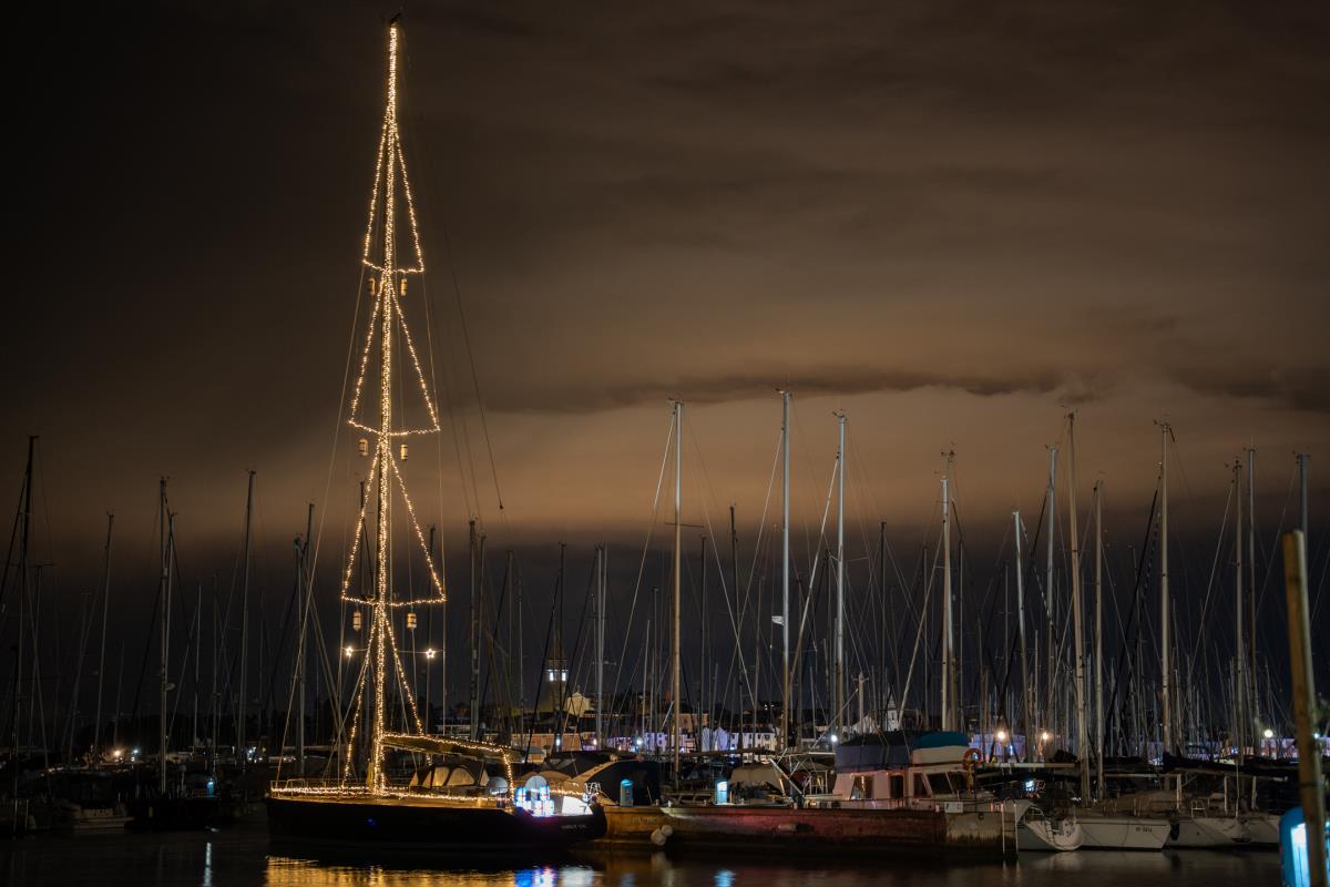 Na morju v središču izolske marine je te dni zasijala najvišja novoletna jelka v Sloveniji. Izvirno okrašeni jambor jadrnice Only Lu je inštalacija podjetja Cleansport Group.